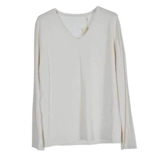 Eleva tus básicos diarios con nuestra camiseta de manga larga, diseñada para quienes valoran la sencillez y la calidad. Con un corte relajado y un favorecedor escote en V, esta pieza es la base para cualquier look, desde un estilo de oficina con blazer hasta un domingo relajado